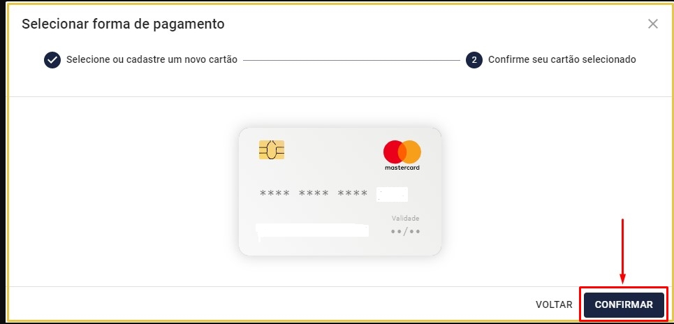Confirme a alteração de seu cartão, clicando em "Confirmar".
