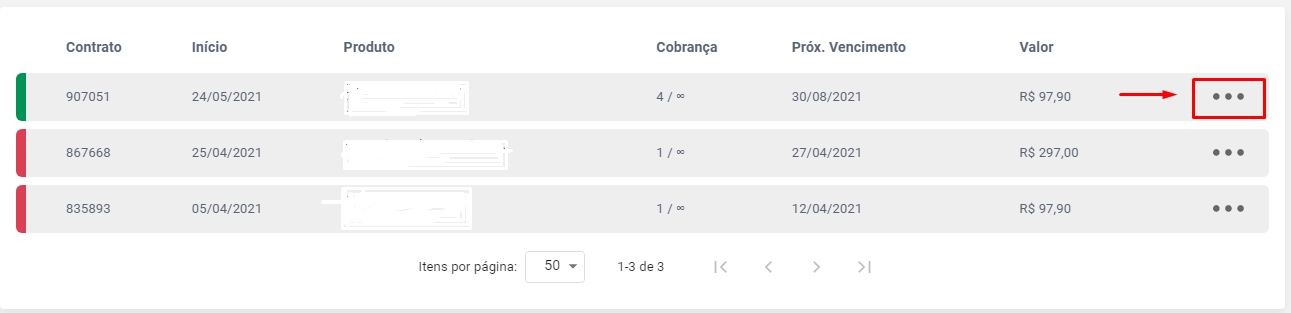 Na janela do produto adquirido, acesse os três pontinhos ao final da linha.
